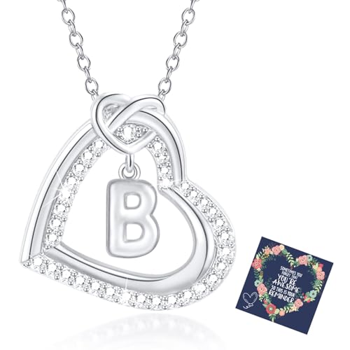 Halsband Kvinnor Silver Necklace Kvinnor Zirkonia Hjärta Hängsmycke Necklace med bokstäver A-Ö Halsband Dam Presenter för Kvinnor Flicka Flickvän 18 + 2 tum (Silver B)