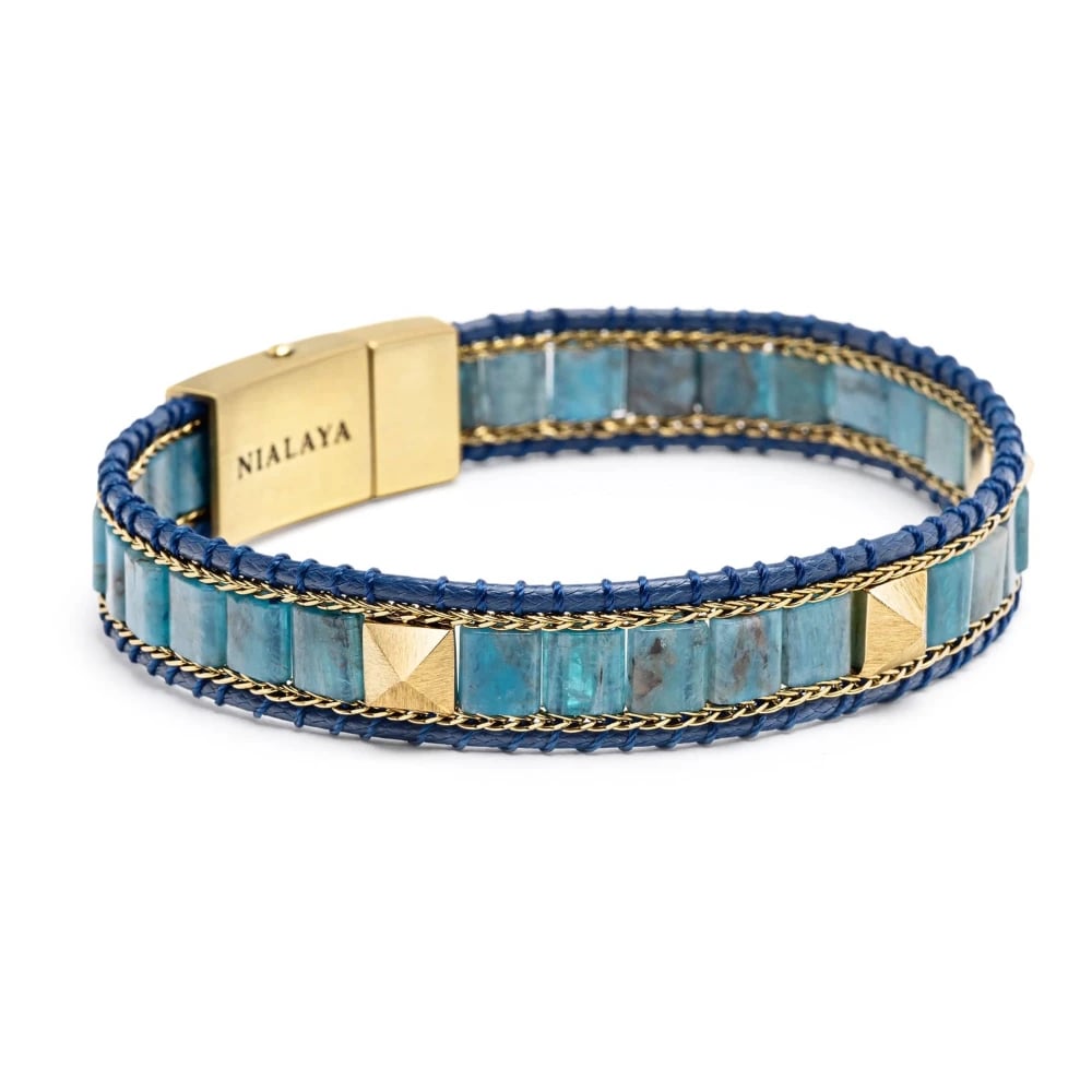 Nialaya, Accessoarer , Herr, L, Blue Apatite Stud Bracelet