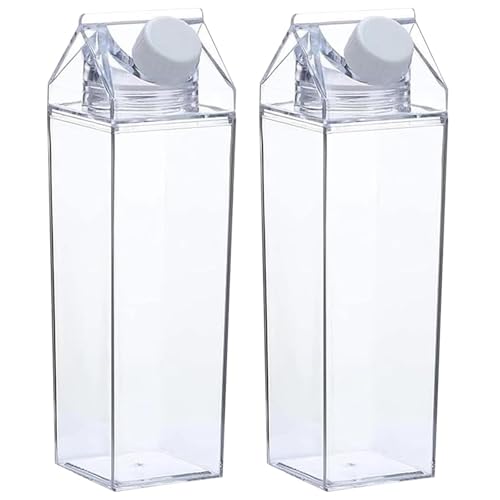 GVPOELR Mjölkkartong vattenflaska, 2 stycken 1 000 ml klar vattenflaska, transparent mjölkkartong, återanvändbar, för picknick, camping, mjölk, apelsinjuice