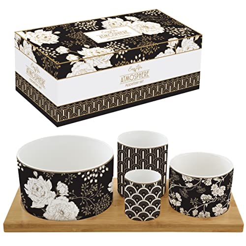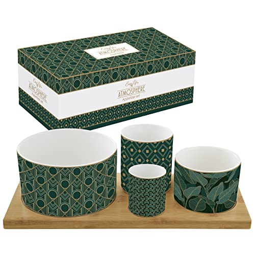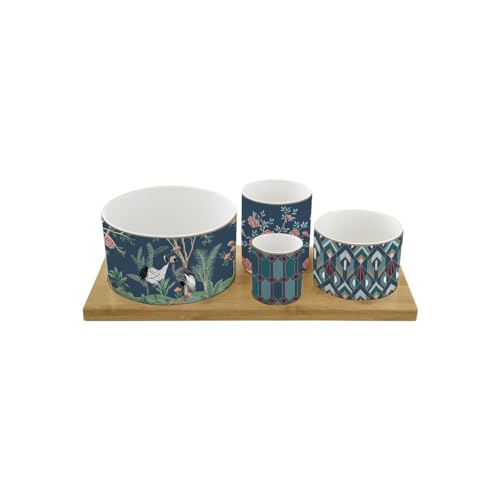 Aperitif Set med 4 porslinskoppar på bambubricka Charleston