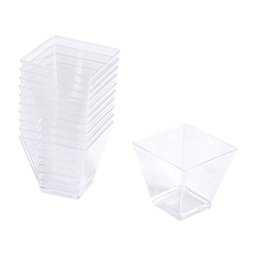 Set med 25 engångs fyrkantiga mini aperitif glas 6 cl transparent