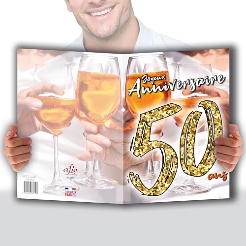 MX-5050 MAXI stort gigantiskt XXL-kort för födelsedag 50 år blandat H/F + kuvert format 32 x 23 cm - siffror gyllene nummer firar lycka pritz aperitif - tillverkad i Frankrike