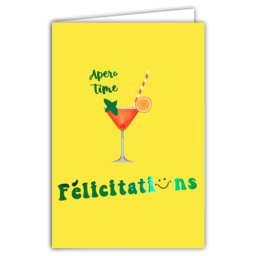 69-8121 FLUO kort neon aperitif text med kuvert 12 x 17,5 cm - fink öl vin god hälsa grattis vit interiör aptitretare för skrivning - äkta FLUO-bläck - skapat och tillverkat i Frankrike