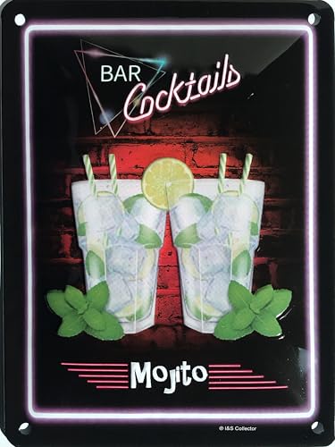 IETS19500RC 3D-präglad metallplatta 20 x 15 cm, cocktailbar, mojito, mint, citron, Happy Hour, exotisk frukt, tropisk aperitif aperitif trecking hälsa