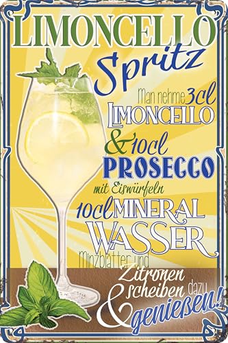 Väderbeständig dekorativ skylt, bar, receptskylt – sommar cocktail, aperitif – stänk, sprizz, venetiano – likör med prosecco – 30 x 20 cm (Limoncello sprut)