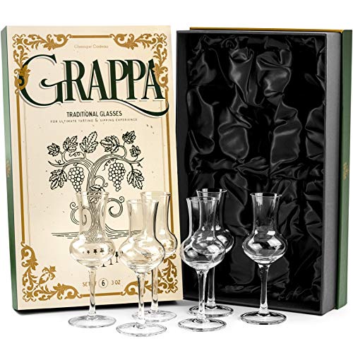Kristall-Grappa- und Cordial-Gläser, klein, 85 ml, langer Stiel, für Likör, nach dem Abendessen, Aperitif, Verdauung, italienische Tulpenform, für Schnaps, Schnapsgläser