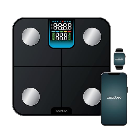 Cecotec Digital Badvåg Med 180 Kg Kapacitet Surface Precision 970 Smart Healthy. Bioimpedansfunktion, App, Bluetooth-Anslutning, Härdat Glas, Yta 278X278 Mm