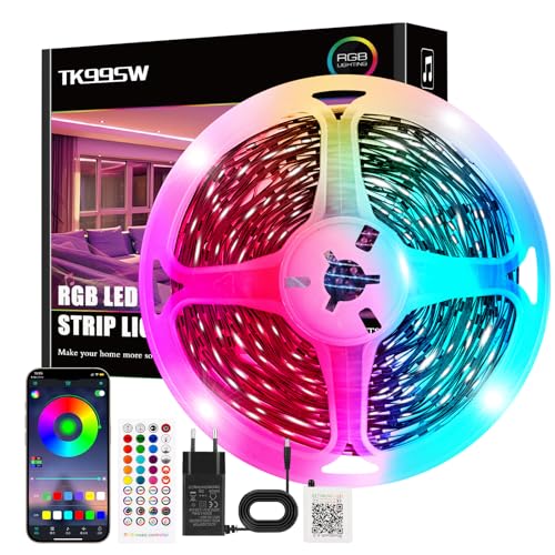 LED Remsa 15m, RGB Ljusremsa Med 40 Tryckknapps Ir Fjärrkontroll Och App Kontroll, Musikalisk Synkroniserad Fär Gskiftande Känslig Inbyggd Mikrofon TimerinstäLlning, För Fest/Hem/Sovrum/KöK