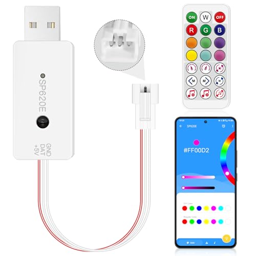 SP620E Bluetooth WS2812B WS2811 Styrenhet med IR-Fjärrkontroll, USB-Gränssnitt, Smart Phone APP-Kontroll för Adresserbara RGB LED-Remsor