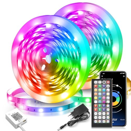 LED-remsa 30 m, RGB LED-remsa med fjärrkontroll och app, musik, synkronisering, tidsinställning, dimbar, LED-ljuskedja för hem, TV, fest, spel