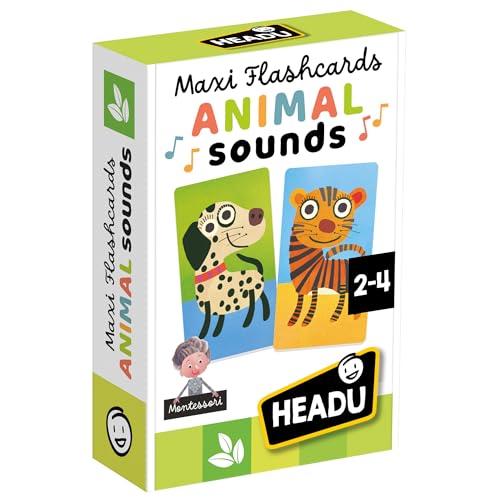 HEADU - Maxi Flashcards Montessori Animal Sounds Känn igen och lyssna på djuren med dedikerad app för att lyssna på pedagogiska spel 1–4 år julklapp påsk tillverkad i Italien