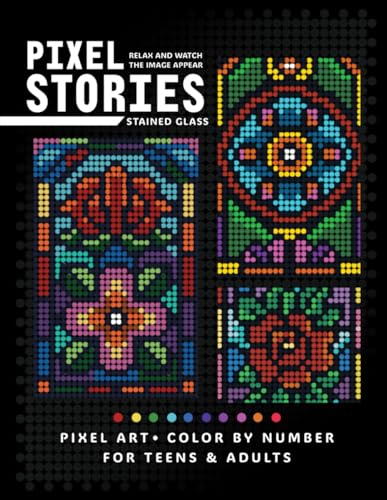 Pixel Stories: Relax and watch the image appear - Stained glass: Pixel art - Color by number for teens and adults