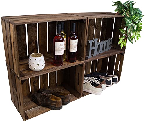 4 stycken nya stabila fruktlådor pinnar, äppellåda, vinlådor från Altes Land ++ natur 54 x 35 x 30 cm (svartbrun)