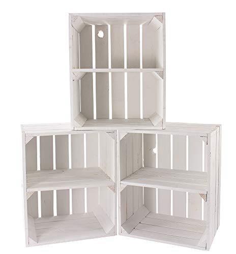 Vinterior 3-pack ny vit fruktlåda Johanna/skohylla förvaringshylla sistellbord skobox vinlåda äppellåda trälåda hylllista förvaringslåda 50 cm x 40 cm x 30 cm (L x B x H)