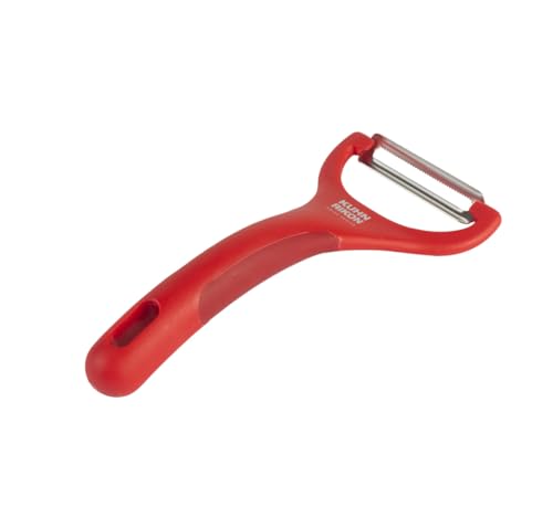 Kuhn Rikon röd piraya Y-skalare med blad i rostfritt stål. Grönsaksskalare Grönsaksskalare Skarpa potatisskalare för kök. Äppelskalare – 3 års garanti för köksartiklar från Kuhn Rikon
