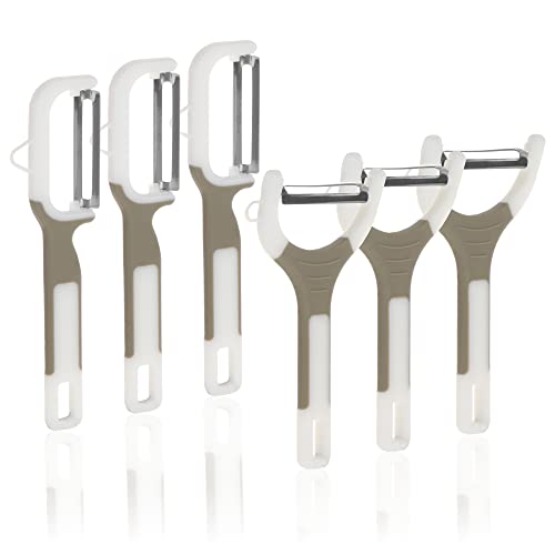 COM-FOUR® 6x skalare i 2 versioner 3 stycken med kryss och 3 med längsta blad för ekonomisk skalning av frukt och grönsaker Potatisskalare Äppelskalare pendelblad