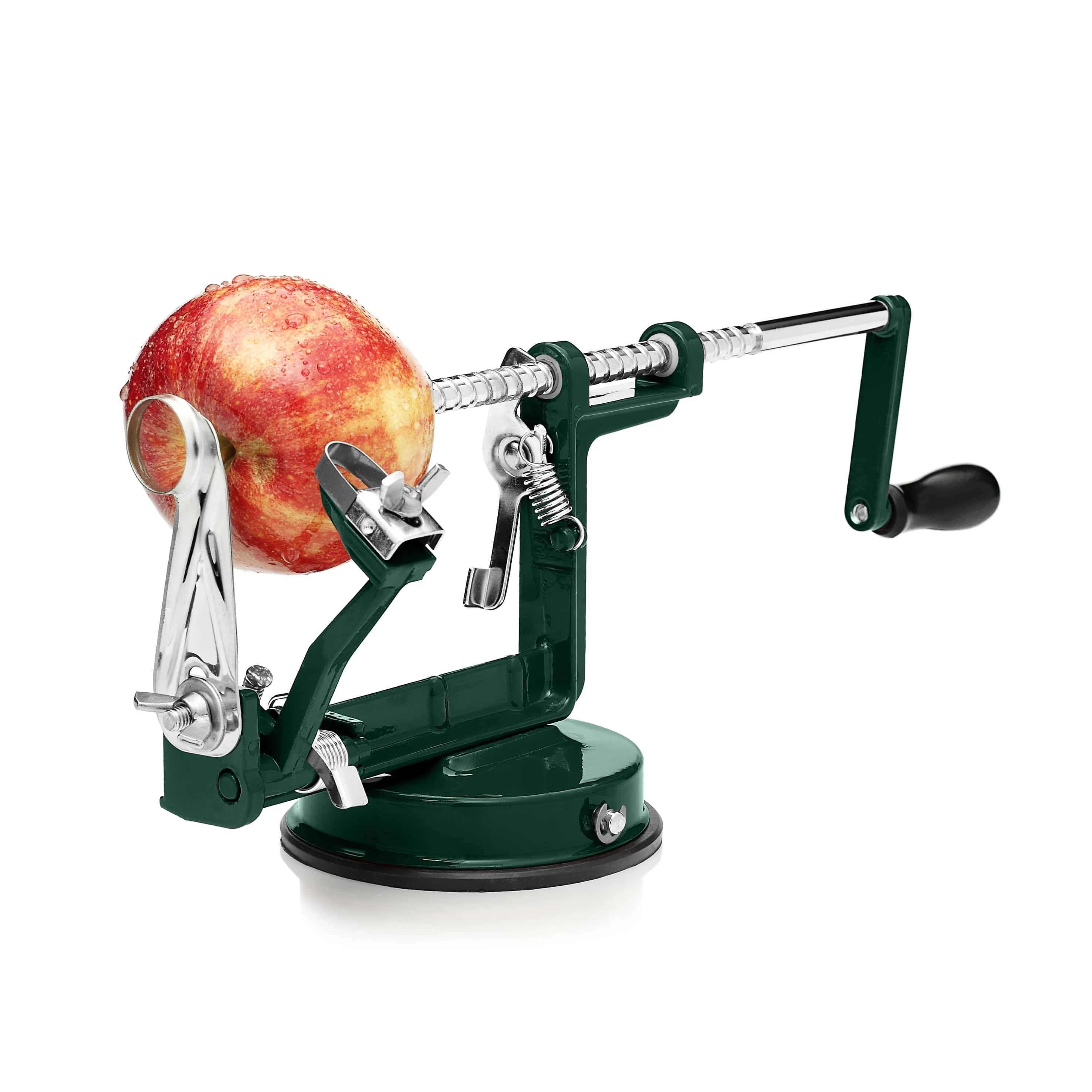 Manuell handvev äppelskalare, kärnare och skivare – sugande halkfria diskgrepp – blad i rostfritt stål – skalar, kärnor och skär på några sekunder för hemkök, snabbäppelsåspatillverkning (mörkgrön)