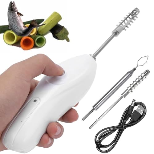 Elektrisk zucchini äppelskalare Corer, Rostfritt stål Frukt Grönsak Corer Remover med 2 skärhuvuden, Handhållen Frukt Fiskfjällsskrapa Skaldjursavkalkningsmedel, Fruktgrävare