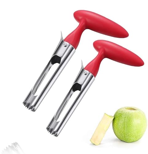 Äppelurkärnare, äppelskärare, röd, 2 stycken, 304 rostfria äppelskärare, för frukt och grönsaker, med vasst tandat blad och ergonomiskt handtag