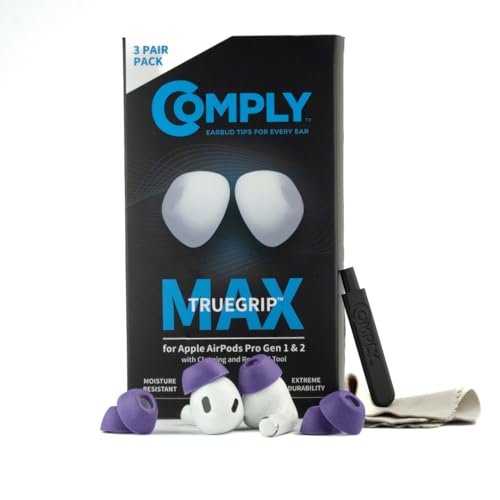 Comply TrueGrip MAX | Premium Memory Foam Replacement Earbud Tips for Apple AirPods Pro 1 & 2 | Long Lasting Comfort, MAX Durability, Secure Fit, Superior Noise Isolation| Purple (S/M/L) (3 Pairs)