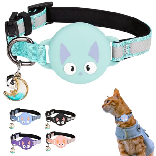 LZXLXS Airtag katthalsband breakaway, reflekterande katthalsband med Apple Air tag hållare och klocka för flickor pojkar katter, blå