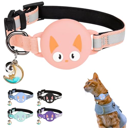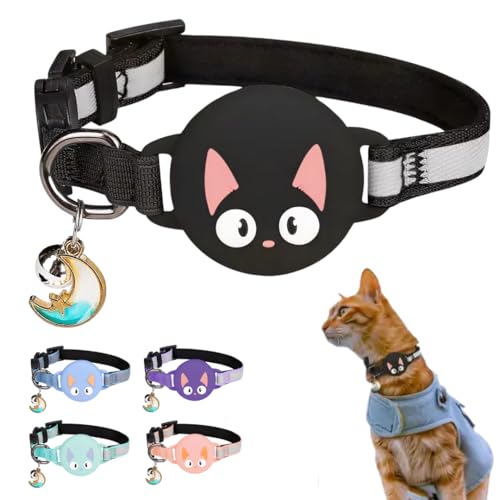 LZXLXS Airtag katthalsband breakaway, reflekterande katthalsband med Apple Air tag hållare och klocka för flickor pojkar katter, svart