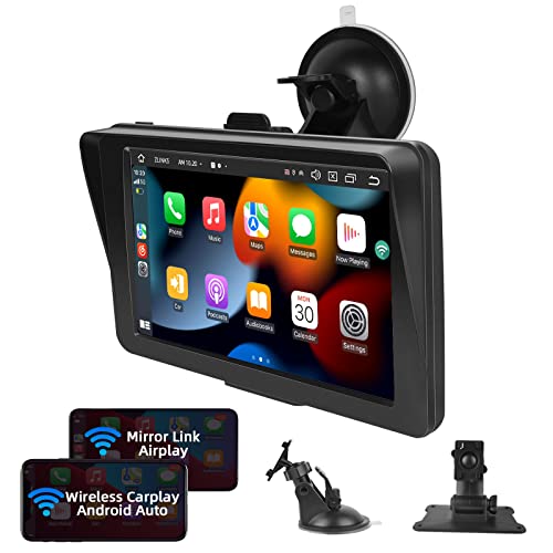 Podofo A-pple Carplay display, bärbar 7-tums bilradio stor IPS-pekskärm med Bluetooth/Android Auto/Airplay/Mirror Cast/FM/AUX för bilar/SUVs/skåp/pickups och lastbilar