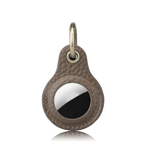Airtag hänge, nyckelring, fodral, skyddsfodral – äkta läder – fodral kompatibelt med Apple Airtag hänge | grå