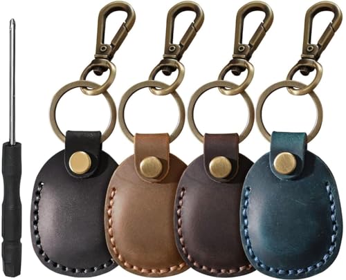 AirTag-nyckelring i äkta läder för Apple AirTags [4-pack] anti-förlust säker nyckelring fodral för nyckel, husdjurskrage, väskbagage. Handgjort 360° skyddande lufttagg tillbehör nyckelringsskydd
