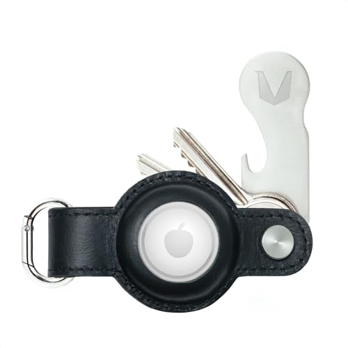 Wave Äkta läder nyckelskydd med nyckelring, Apple AirTag, svart