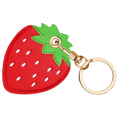 AXFEE 360° Skyddsfodral för AirTag - Tecknad Jordgubbe, Läder Nyckelring, Hållare Med Dekorationer för Apple AirTag