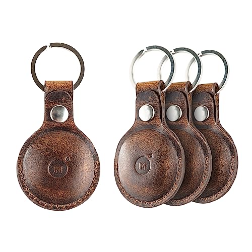 iTAGGi Airtag nyckelring av äkta läder – skyddsfodral kompatibelt med AirTag – äkta läderfodral för nycklar, väskor, husdjurstillbehör – hänge med säker tryckknapp (brun)