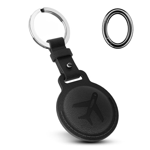 Ainiv AirTag-skyddsfodral, lädernyckelring, skyddsfodral kompatibelt med AirTags, nyckelring i läder för AirTag, Mini Apple AirTags-fodral, läderskal, nyckelring, fodral med nyckelring, # 1 svart, En Storlek