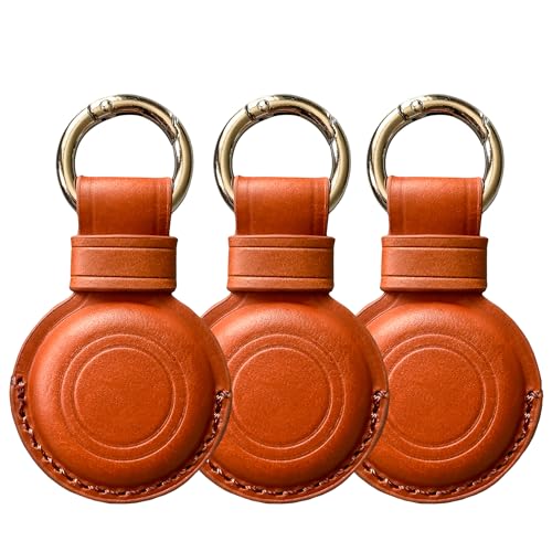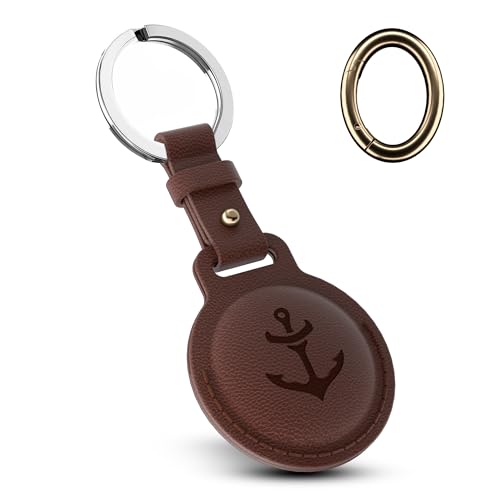Ainiv AirTag-skyddsfodral, lädernyckelring, skyddsfodral kompatibelt med AirTags, nyckelring i läder för AirTag, Mini Apple AirTags-fodral, läderskal, nyckelring, fodral med nyckelring, #2 brun