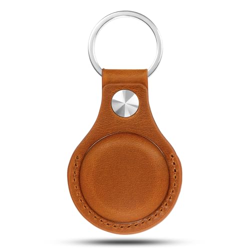 Airtag nyckelring, Airtag hänge läder, Airtag fodral kompatibelt med Apple Airtag, Airtag Case – brun, BRUN