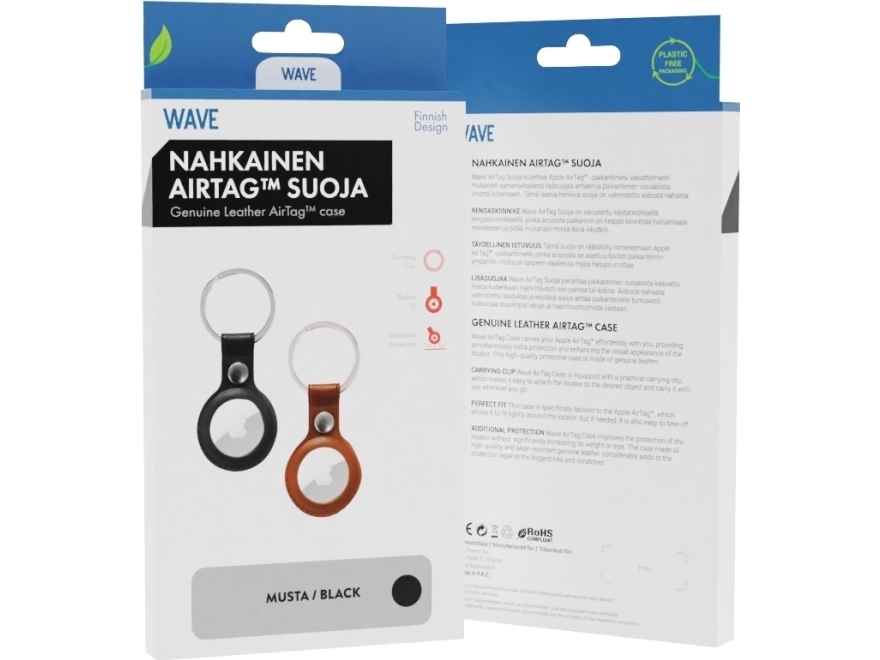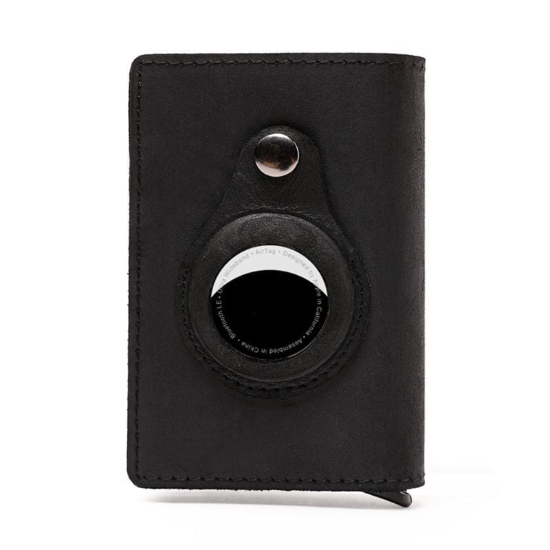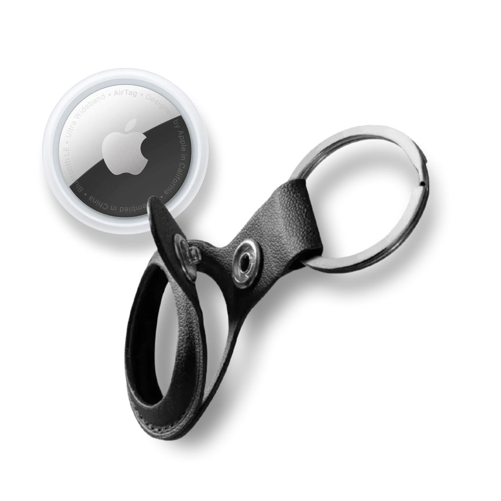 Wave Genuine Leather Odinis Dėklas Su Raktų Pakabuku, Apple Airtag, Juodas