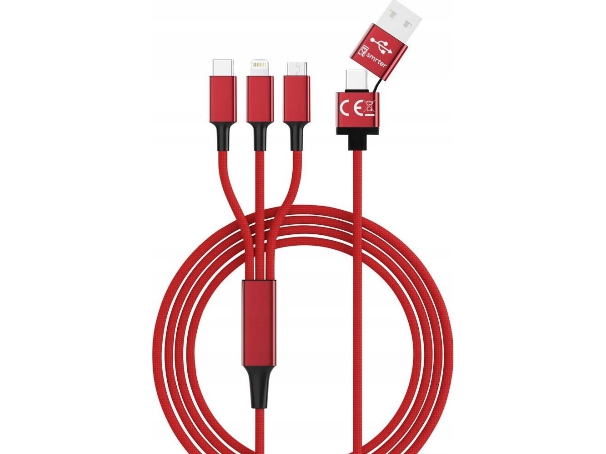 Smrter Usb-Opladerkabel Usb 2.0 Usb-A-Hanstik, Usb-C® Stik, Apple Lightning-Stik , Usb-Micro-B-Hanstik 1.20 M Rød Smrter_Hydra_Ult_Rd