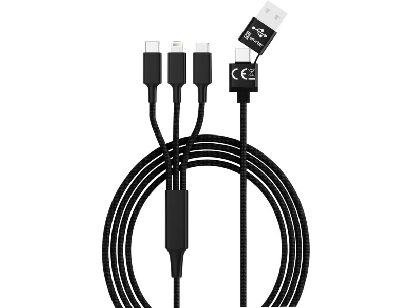 Smrter Usb-Opladerkabel Usb 2.0 Usb-A-Hanstik, Usb-C® Stik, Apple Lightning-Stik , Usb-Micro-B-Hanstik 1.20 M Sort Smrter_Hydra_Ult_Bk