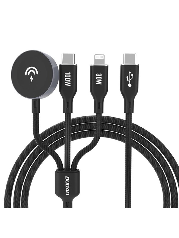 Dudao Apple Watch A12Max+ PD 100W 3in1 Charger Cable: USB-C Lightning 1.2m - Black