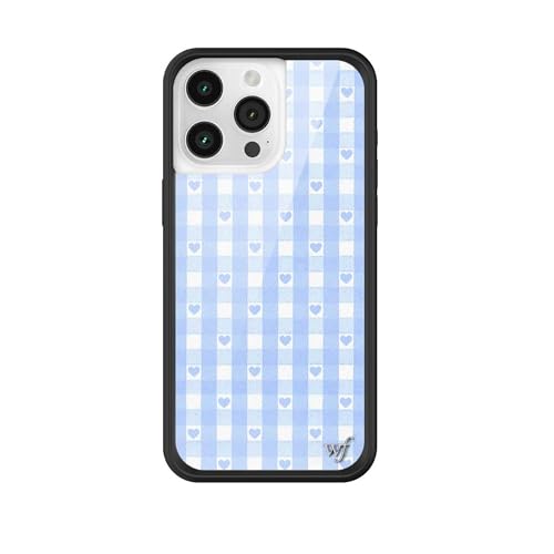 Wildflower Cases - Blue Gingham Hearts, Compatible with Apple iPhone 15 Pro Max | Plaid, Checkered, Unique, Cute, Trendy - Protective Black Bumper, 4ft Drop Test Certified, Women Owned Small Business