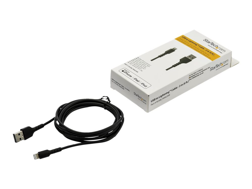 Startech.Com 2M Tålig Svart Usb-A Till Blixtkabel - Tungt, Robust Aramifiber Usb Typ A Till Blixtladdare/Synkron Strömsladd - Apple Mfi-Certifierad Ipad/Iphone 12 - Lightning-Kabel - Usb Hane Rak Till Lightning Hane Rak - 2 M - Dubbelt Skärmad - Sva