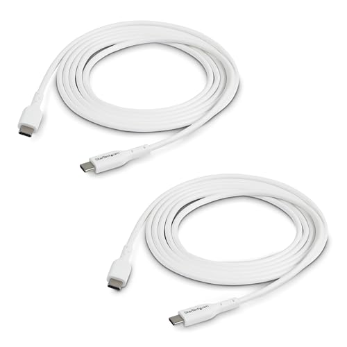 StarTech.com 2 stycken vita USB-C-kablar, 60 W, 3 A, typ C-laddningskabel för MacBook Air, bärbara datorer, iPhone 16 Pro Max/15/Apple CarPlay, iPad Air/Pro/Mini, Samsung Galaxy
