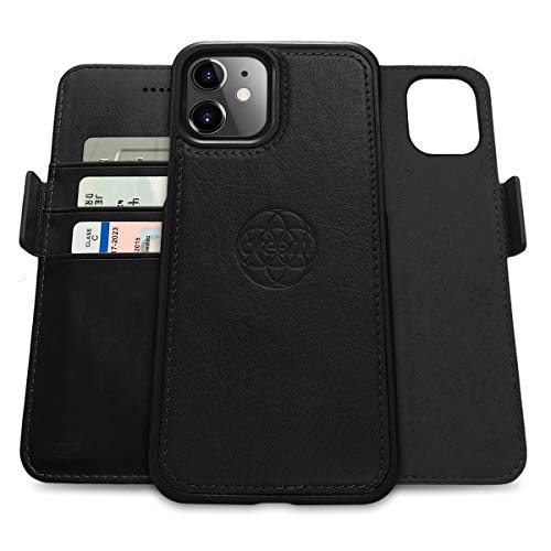 Dreem Fibonacci 2-i-1 plånboksfodral för Apple iPhone 12 Mini - Högkvalitativt veganskt läder, magnetiskt, avtagbart och stötsäkert mobilfodral, RFID-betalkortsskydd, 2 stativlägen- Svart