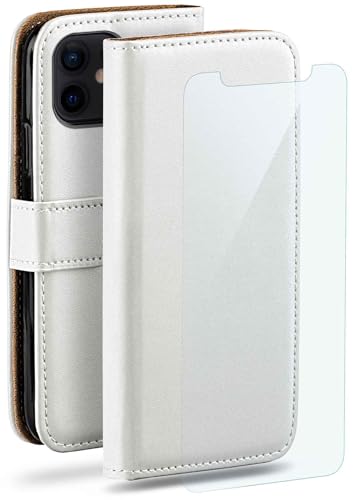 moex Mobiltelefonfodral för Apple iPhone 12 Mini, fodral med [kortfack] [stativfunktion] [Premium PU-läder] skyddande skal, mobilfodral, läderskal med skyddsfolie – vit