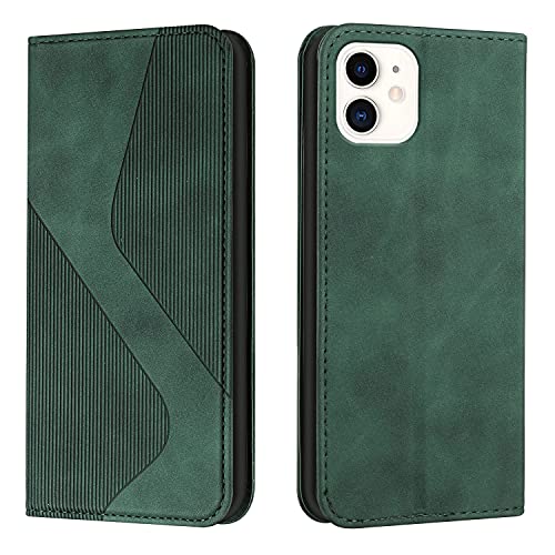 NEXCURIO Mobiltelefonfodral för Apple iPhone 12 Mini mobiltelefonfodral med kortfack vikbart skyddande fodral läder, flip plånbok, fodral skydd väska mobilväska stötsäker – grön