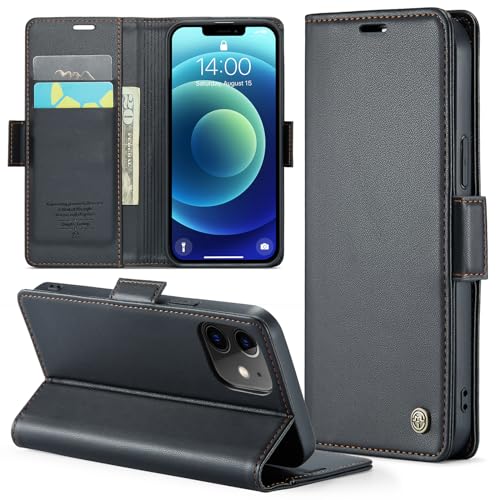 Phernykas Skal för iPhone 12 Mini Case, Läderfodral Plånbok Skal, [TPU-skal] [Kortplatser] [Kickstand] stöttåligt folio flipfodral Wallet Leather Cover för iPhone 12 Mini, Svart