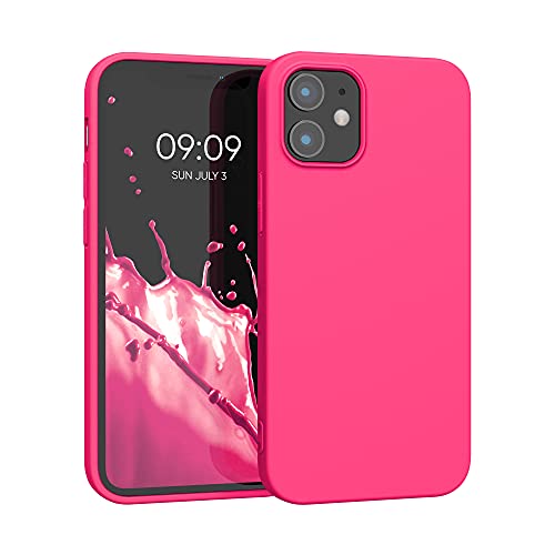 Kwmobile Fodral kompatibelt med Apple iPhone 12 Mini fodral - mjukt TPU silikonfodral - skydd lämpligt för trådlös laddning - neonrosa