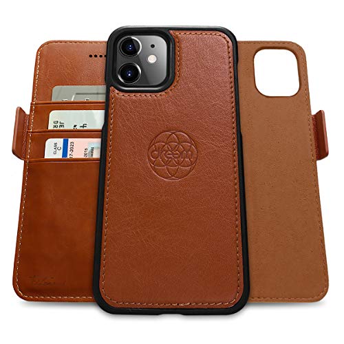 Dreem Fibonacci 2-i-1 plånboksfodral för Apple iPhone 12 Mini - Högkvalitativt veganskt läder, magnetiskt, avtagbart och stötsäkert mobilfodral, RFID-betalkortsskydd, 2 stativlägen- Karamell