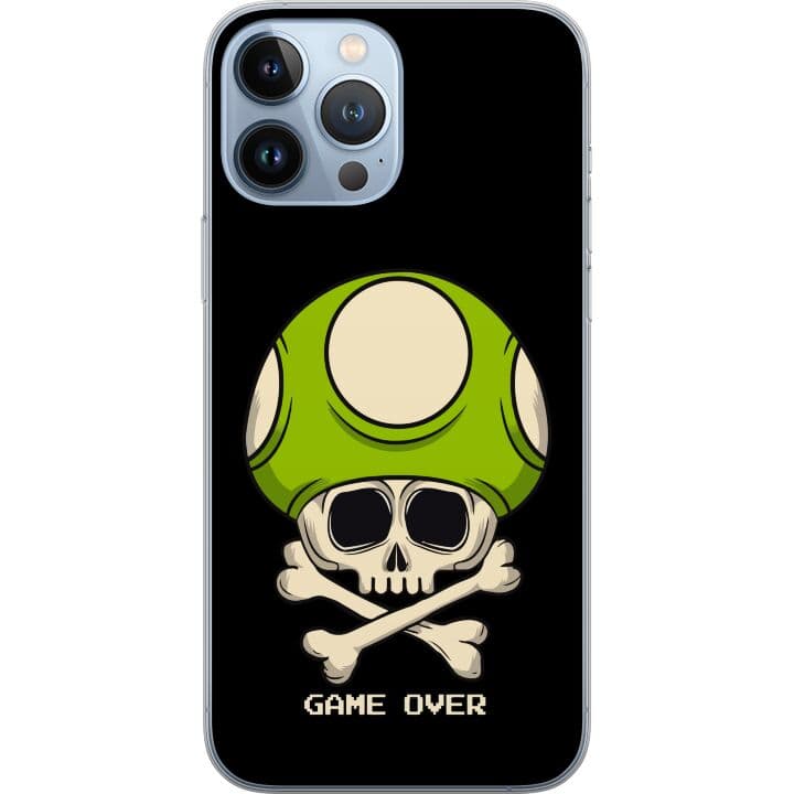 Kompatibelt Mobilskal till Apple iPhone 13 Pro Max Apple Spelinspirerat motiv med dödskalle och grön svamp i retrostil med texten game over
