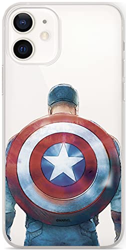 ERT GROUP mobiltelefonfodral för Apple Iphone 12 Mini originalt och officiellt licensierat Marvel mönster Captain America 008 Vit anpassad till formen på mobiltelefonen, gedeeltelijk transparant